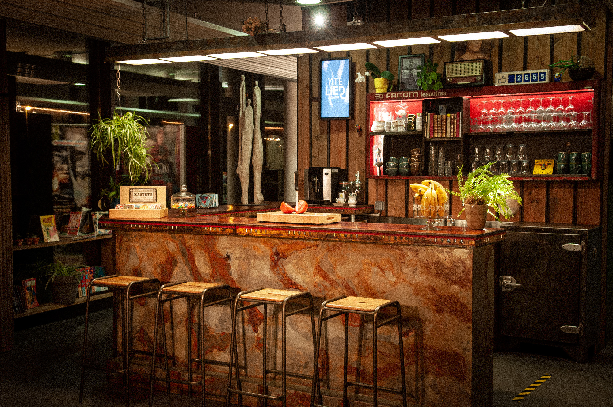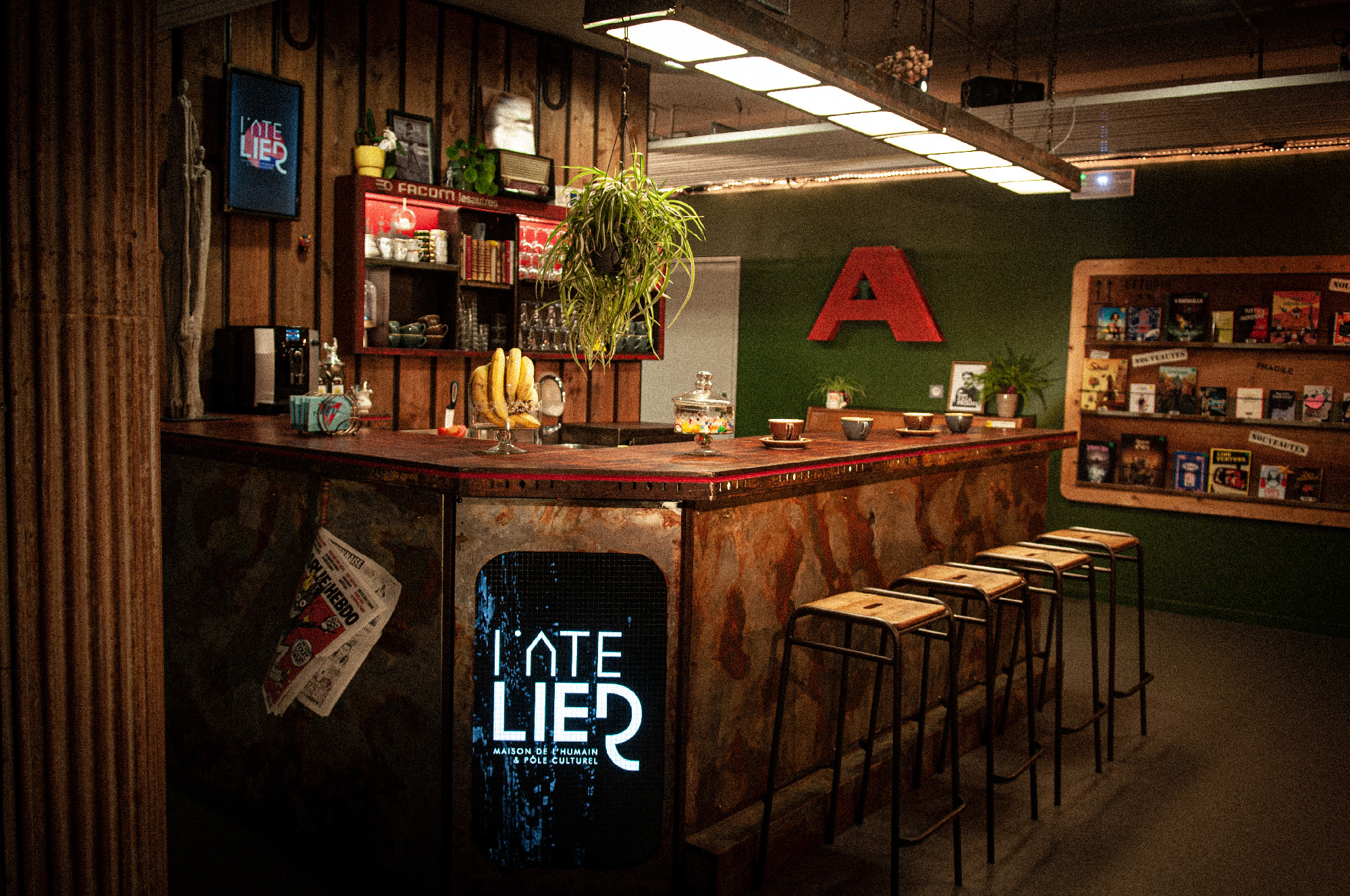 Composé d’un Point Jeunes, d’une médiathèque, d’une ludothèque, d’un studio d’enregistrement, d’un café comptoir, d’un espace d’expositions, d’un théâtre de verdure et d’une salle de répétition, L’atelier prend sa force dans son concept de « lieu à partager » dédié à la vie sociale et culturelle de la communauté. Un temps médiathèque, le lendemain café philo, une autre fois salle de concert, le jour suivant lieu de résidence artistique, hier un festival de jeux, le surlendemain lieu d’expositions, L’atelier est l’espace de toutes les expressions culturelles. Il se veut être un équipement protéiforme et collaboratif, ouvert à tous, propice à l’expérimentation et à la découverte. L’atelier n’est pas uniquement un espace d’animation socioculturelle, il est un lieu décloisonné qui s’ouvre à une nouvelle approche du « vivre ensemble » et se détourne des lieux traditionnels de consommation. La participation des publics est ainsi un principe incontournable pour favoriser le développement du lien social. Elle concerne à la fois les bénévoles impliqués dans la vie de L’atelier, mais aussi les usagers de la structure et les habitants du territoire. Ainsi, L’atelier devient « un facilitateur social » qui permet aux publics de s’y sentir « comme à la maison ».