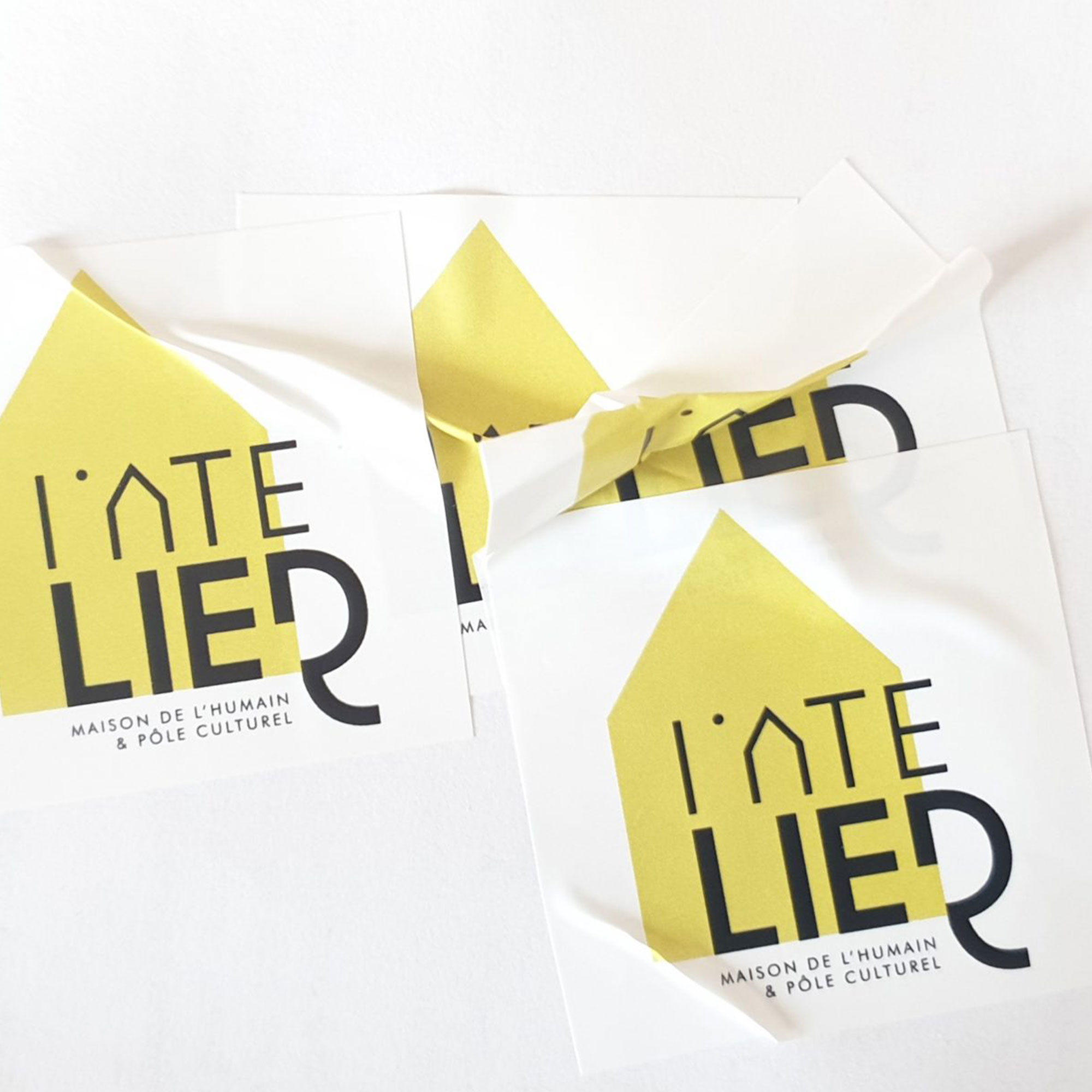 Par ce nouveau logo nous voulons rappeler l’originalité du projet et les innovations sociales, culturelles et créatives qu’offrent L’atelier « Maison de l’Humain ». Le « A » est une maison, le toit des femmes et des hommes qui vivent ensemble et œuvrent en commun pour une culture participative, collective et responsable. Comme un bien commun, cette « Maison Atelier » est le laboratoire des tisserands pour recréer toutes les lies nourricières de la vie humaine. Le toit fédère, protège et défini cet espace de créativité et d’émancipation. Le mot « atelier » est présenté sur deux niveaux afin de souligner le plus possible le mot « Lier ». Le « R » symbolise un début de couture du lien social. Il est là pour rappeler « qu’ici on tisse », on répare et on construit le monde de demain. La patte du « R » dépasse du cadre pour dire « je m’émancipe », je sors de la caverne et de ma condition pour devenir un Humain libre.